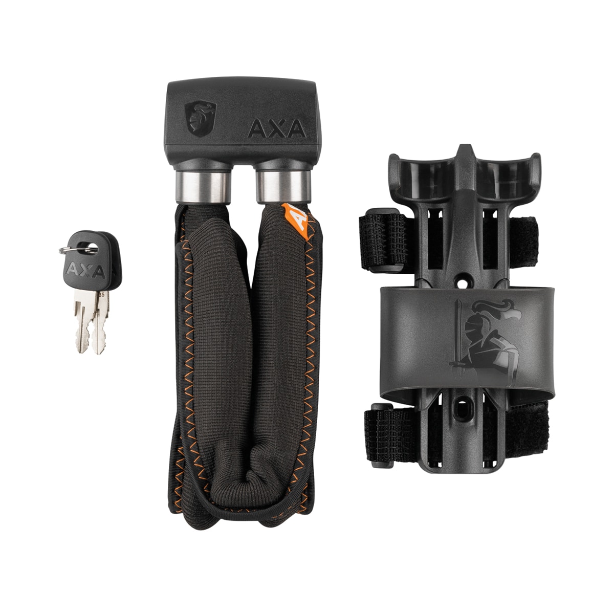Das Foldable 600 von AXA ist mit 6mm breiten, aus gehärtetem Stahl bestehenden, beweglichen Gliedern ausgestattet. So kannst du das Schloss flexibel einsetzen und nahezu überall befestigen. Es leistet hohen Widerstand gegen Angriffe durch Schneiden und Ziehen. Die dicke Ummantelung bietet guten Lackschutz. Während der Fahrt kannst du es sicher in dem mitgelieferten Halter verstauen, dessen Halteschlaufe zur frontalen Entnahme geöffnet werden kann. Dieser wird entweder mittels zweier Schrauben an den Flaschenhalterbohrungen oder mit zwei gummierten Klettriemen an dem Rahmen deines Rades befestigt.