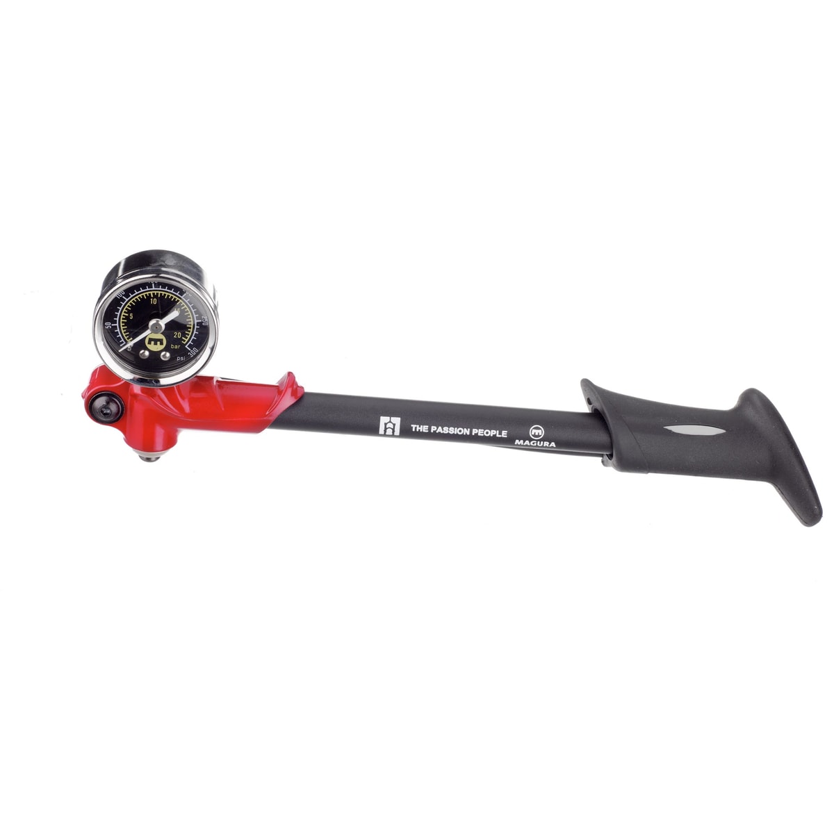 Mit der Magura Federgabelpumpe können Dämpfer- und Federgabeln auf bis zu 20 Bar befüllt werden. Durch ein spezielles Ventil entsteht kein Luftverlust beim Abschrauben der Pumpe von den Federelementen.