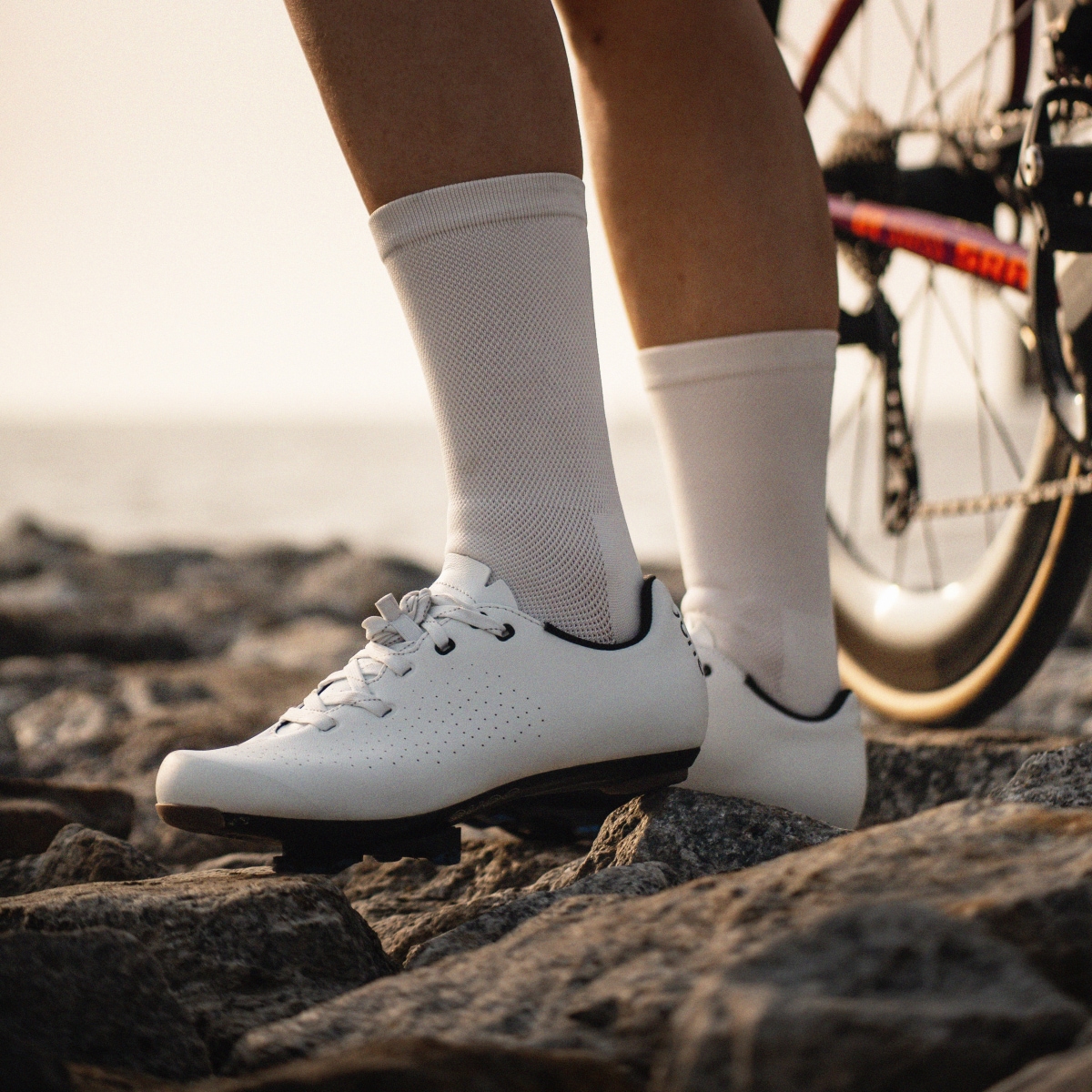 Back to the roots: Verlasse dich mit den ESCAPE ROAD LACE Rennradschuhen von QUOC auf den guten alten Schnürverschluss, der nicht nur elegant aussieht, sondern auch noch robust ist und für eine gleichmäßige Druckverteilung sorgt. Doch diese Fahrradschuhe können noch mehr, denn mit ihrer Carbonverbundsohle bieten sie dir eine effiziente Kraftübertragung ins Pedal. Die präzise gesetzten Perforationen machen sich ebenso immer bezahlt, egal ob auf der entspannten Runde mit deiner Crew oder auf der Langstrecke im Training. Mit ihrem abriebfestem Obermaterial und Zehenschutz sind diese Road-Schuhe für Abenteuer gemacht, den Absatz unter der Ferse kannst du dem Terrain anpassen und deinem Ziel entsprechend austauschen (Ersatzteil nicht im Lieferumfang enthalten). Breche aus deinen Gewohnheiten aus und traue dich auf neue Wege mit den ESCAPE ROAD LACE Rennradschuhen von QUOC.