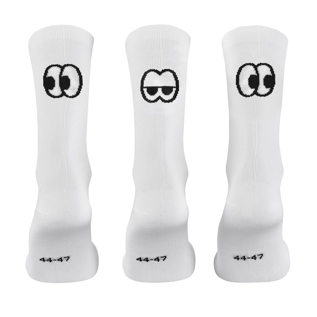 Wenn du mal wieder nur Augen für dein Bike hast, schauen sich die ROSE Eyes Socks für dich um. Bei diesem Blick traut sich keiner deiner Kontrahenten im Race an dir vorbei. Dank atmungsaktivem und geruchshemmendem Q SKIN Garn, machen lange Bike Days mit diesen Socken einfach mehr Spaß. Verstärkungen an Fersen und Zehen bieten außerdem ein Plus an Haltbarkeit. Mit dem 3er-Pack hast du direkt alle drei Varianten zu Hause. Ob für Road, Gravel oder Trail, dieser Blick ist einfach unwiderstehlich!