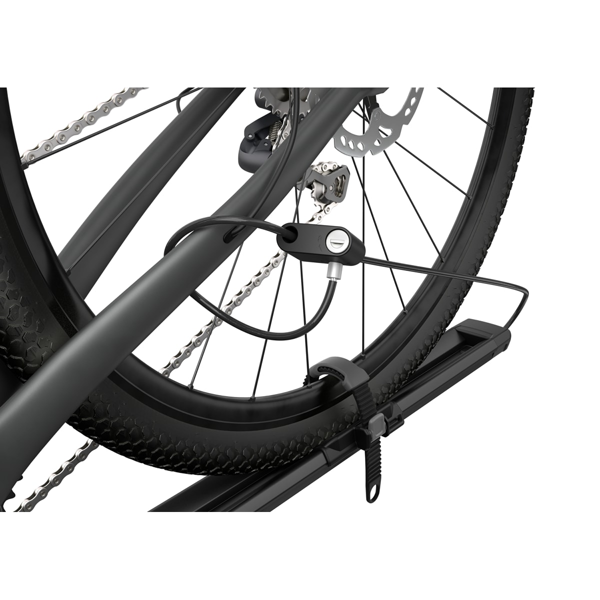 • Fahrrad kann am Fahrradträger (integriertes Kabelschloss) und der Fahrradträger am Fahrzeug gesichert werden (Schlösser im Lieferumfang enthalten)