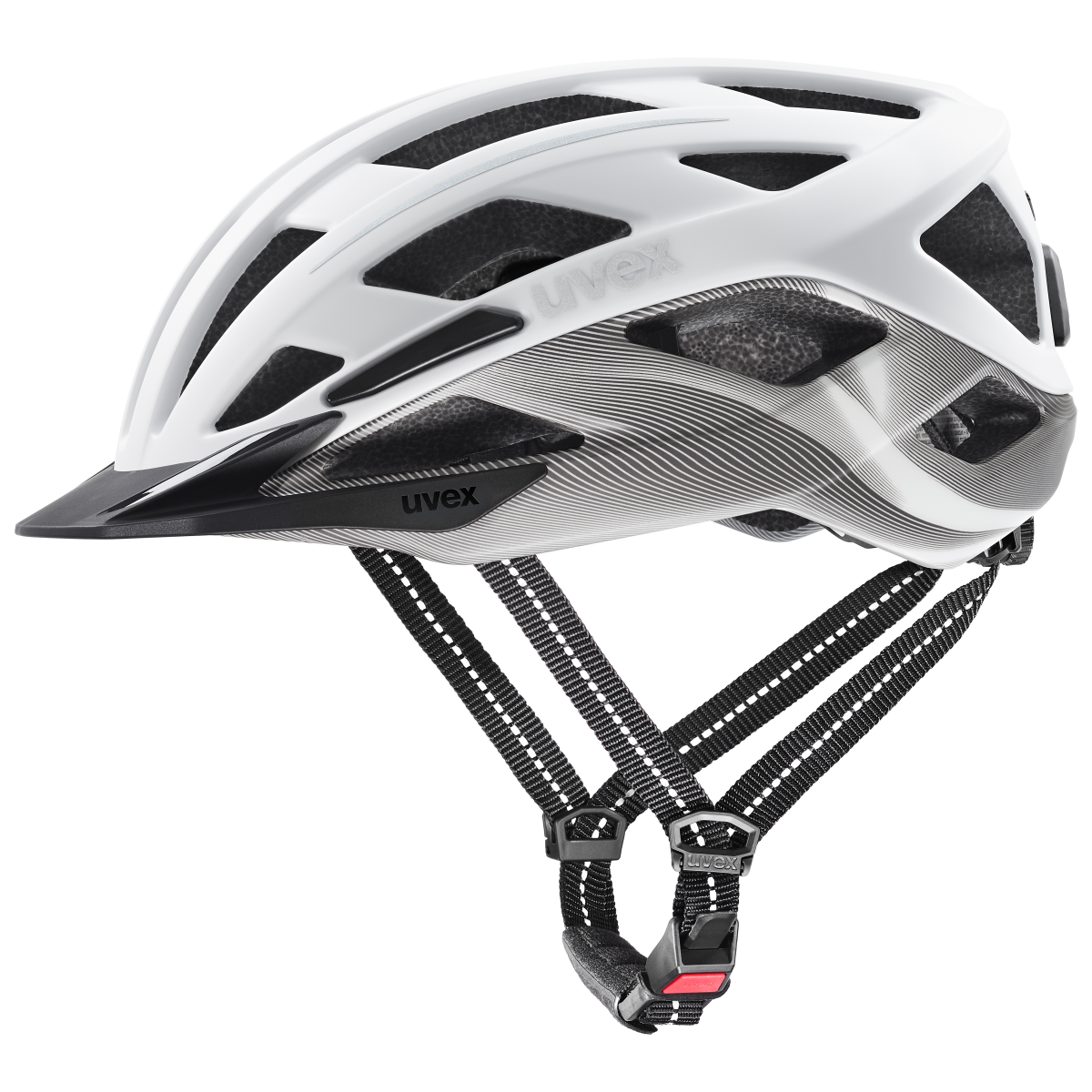 Alltag. Auszeit. Ankommen. Der Fahrradhelm CITY I-VO 2 von uvex ist ideal für entspannte City-Rider geeignet, die morgens ins Office, nachmittags zum Einkaufen und abends noch eine gemütliche Runde in guter Gesellschaft fahren möchten. Er schützt zuverlässig, ohne aufzutragen. Die DOUBLE INMOULD-Technologie sorgt für hohe Stabilität bei geringem Gewicht – dank der festen Verbindung aus stoßabsorbierendem, recyceltem EPS-Hartschaum und nahtlos verbundener Polycarbonat-Schale. Die Passform? Lässt sich per 3D-IAS-System einfach in Höhe und Weite anpassen – für Komfort, der den ganzen Tag mitgeht. Die Innenausstattung ist waschbar, herausnehmbar und besteht aus recyceltem Material. Ein integriertes Visier schützt vor Sonne und Regen, ohne das Sichtfeld einzugrenzen. Und für frische Luft im Stadtverkehr: 25 Belüftungsöffnungen mit integriertem Fliegengitter. Reflektierende Design-Elemente und natürlich das wiederaufladbare Plug-in LED-Rücklicht erhöhen die Sichtbarkeit im Feierabendverkehr. Dazu kommt der MONOMATIC-Verschluss, der praktisch, sicher und einhändig bedienbar ist. Dein Helm in der City – der uvex city i-vo 2.